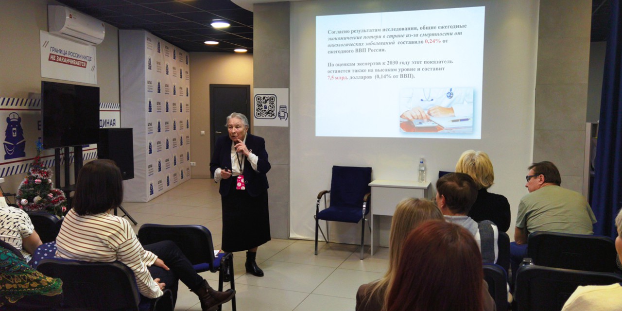 Но разговор на Школе шел не только о рассеянном склерозе. Лидия Ивановна Чашина, Президент КРОО «Вита» и заслуженный врач РФ, затронула тему профилактики онкологии, призывая собравшихся внимательно относиться к своему здоровью и не пренебрегать прохождением диспансеризации. Приведя статистику, Лидия Ивановна показала собравшимся как образ жизни влияет на риск развития онкологических заболеваний.