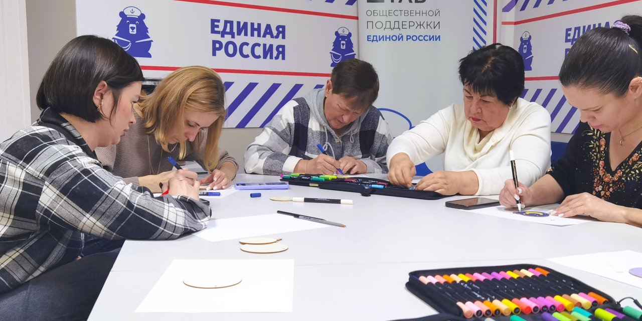 В финале встречи, после вкусных пирогов и горячего кофе, все дружно собрались за большим столом, чтобы под руководством мастера Шетц Ольги Александровны своими руками изготовить чудесные новогодние украшения.