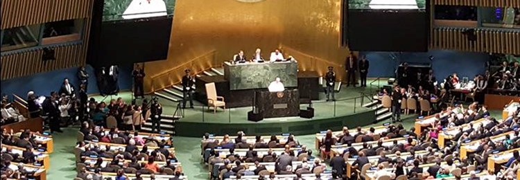 25 сентября утром, в пятницу, папа Римский Франциск посетил штаб-квартиру ООН и выступил с трибуны Генеральной ассамблеи всемирной организации. Понтифик приветствовал лидеров стран, в состав которых входили 150 президентов и премьер-министров. Это самое большое собрание лидеров за историю ООН. Папа Франсиск затронул темы изменения климата, войны в Сирии, иммиграционного кризиса в Европе, детского труда и проституции, a также нелегального чёрного рынка торговли человеческими органами.