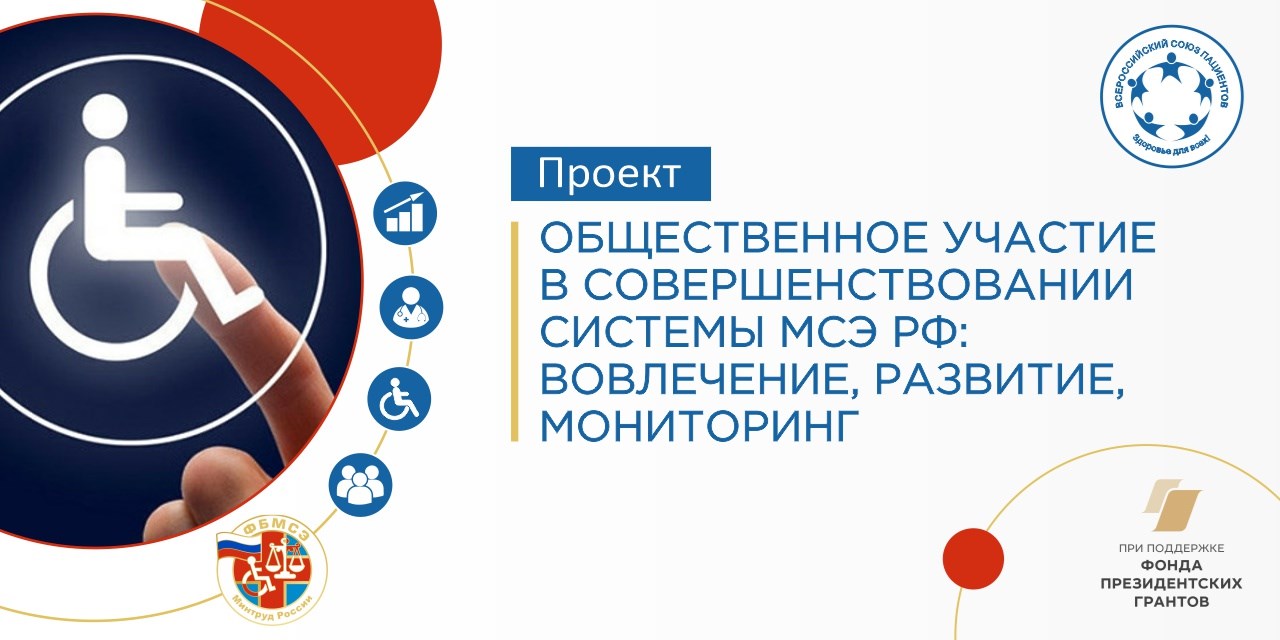 Всероссийский союз пациентов провел исследование «Медико-социальная экспертиза глазами пациентского сообщества» в рамках проекта «Общественное участие в совершенствовании системы МСЭ РФ: вовлечение, развитие, мониторинг», поддержанного Фондом президентских грантов в 2023 году.