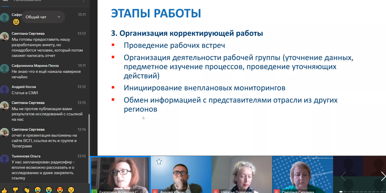 Завершила мероприятие своим выступлением координатор проектов Всероссийского союза пациентов Асташина Е.Е., в котором представила алгоритма подготовки и проведения заседания ОК ГБ МСЭ по обсуждению итоги всероссийского исследования, призвала внести в повестку ближайших заседаний ОК ГБ МСЭ обсуждение этого вопроса.