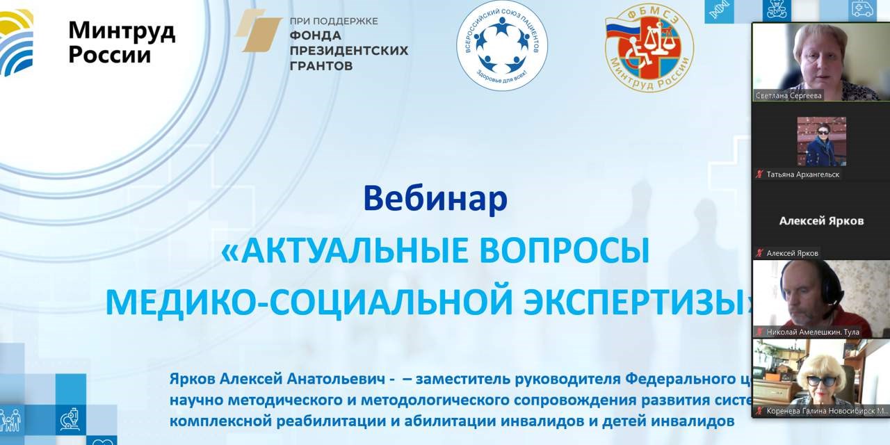 10 октября состоялся вебинар по теме «Актуальные вопросы медико-социальной экспертизы», в котором приняло участие более 55 представителей организаций пациентов и инвалидов.