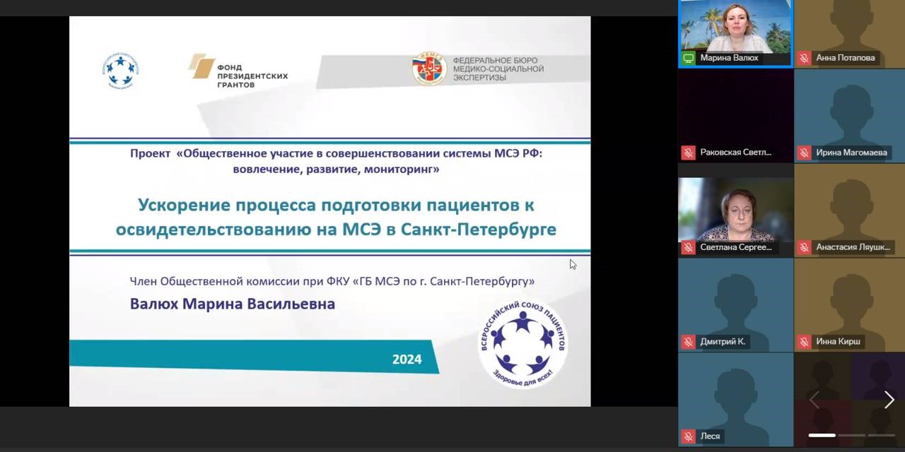 В рамках проекта Всероссийского союза пациентов «Общественное участие в совершенствовании системы МСЭ РФ: вовлечение, развитие, мониторинг» при поддержке Фонда президентских грантов реализуется деятельность по решению проблем лиц, получающих направление на МСЭ в медицинских учреждениях 4 регионов: г. Санкт-Петербург, Липецкая, Иркутская области, Республика Бурятия.
