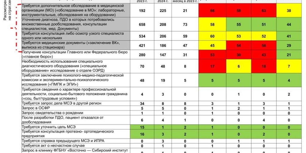 Согласно результатам исследования, документы возвращались из ГБ МСЭ в поликлиники из-за недостаточной информации или ошибок у 15,1% респондентов в Иркутской области, тогда как в среднем по России этот показатель составляет 12,6%. В филиалах ГБ МСЭ за 9 месяцев 2023 года была разработана программа дополнительного обследования для 2291 гражданина. Дополнительный общественный мониторинг выявил ТОП-5 основных факторов, которые были проанализированы и включены в Дорожную карту.