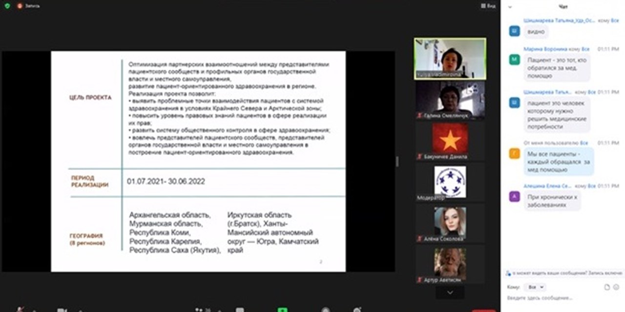 Мероприятие проводилось в рамках проекта «Пациент-ориентированное здравоохранение для жителей Крайнего Севера и Арктической зоны РФ», который реализуется Всероссийским союзом пациентов при поддержке Фонда президентских грантов.