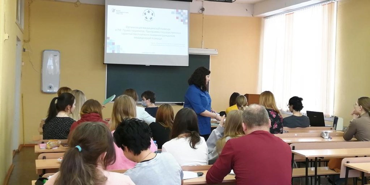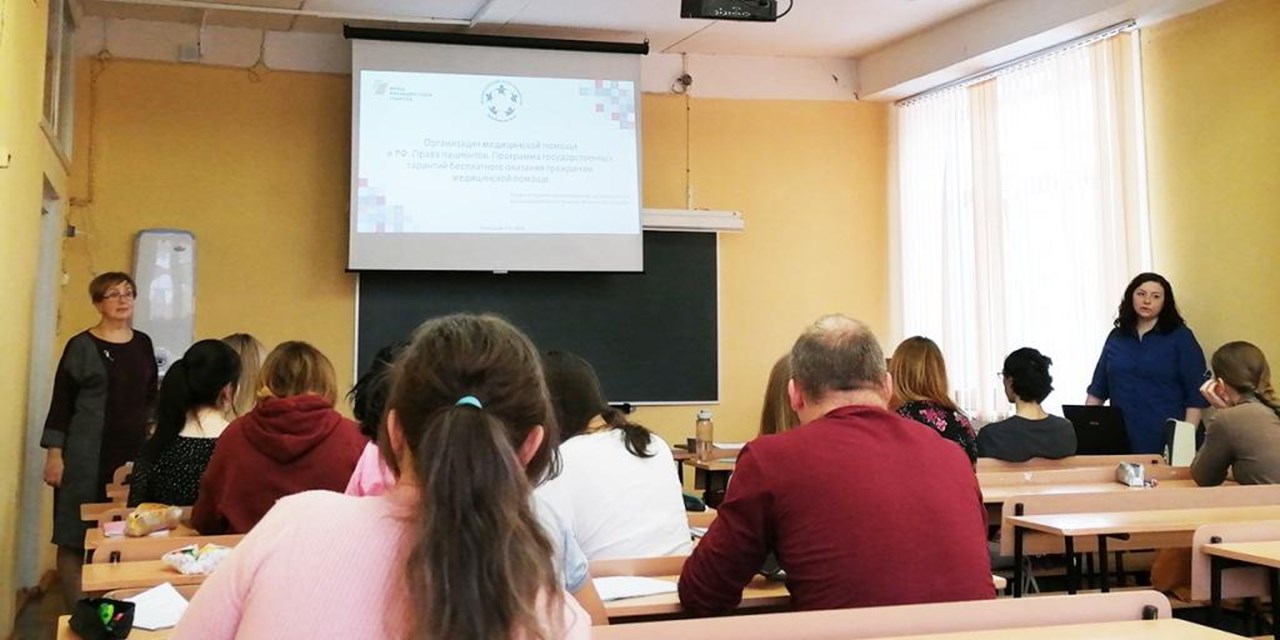 Нина Горлова, заместитель председателя АРОО помощи больным астмой и аллергией, доброволец проектов ВСП, детально ознакомила будущих медиков с наиболее важными статьями 323-ФЗ «Об основах охраны здоровья граждан в РФ».