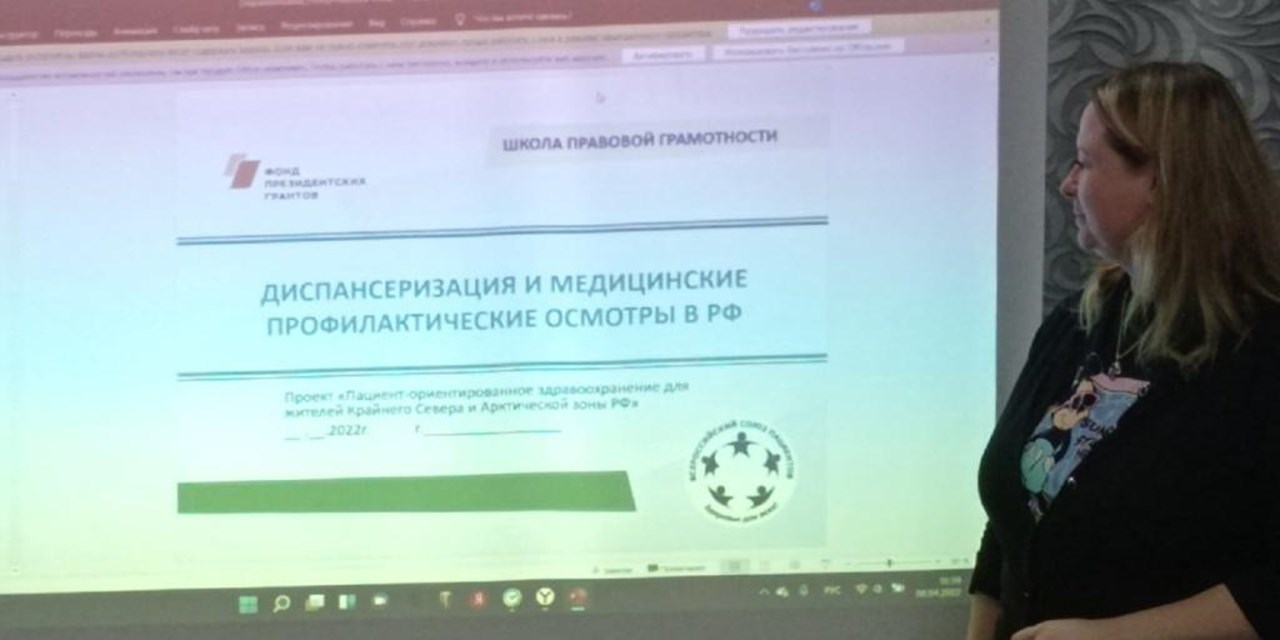 Пациентское сообщество решило повысить уровень знаний в сфере прав пациентов. Специально для них 01.04.2022 года Медведевой Т.В. и Тереховой И.Н. была проведена школа прав пациентов в рамках проекта «Пациент - ориентированное здравоохранение для жителей Крайнего Севра и Арктической зоны РФ», поддержанного Фондом президентских грантов.