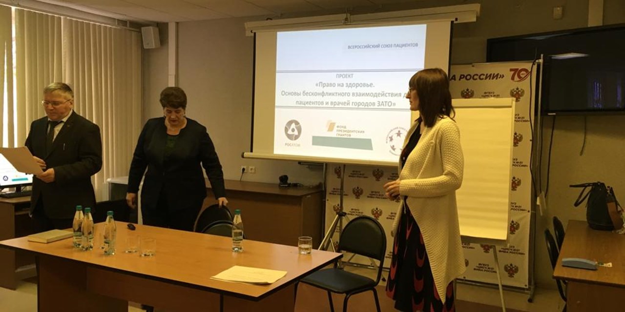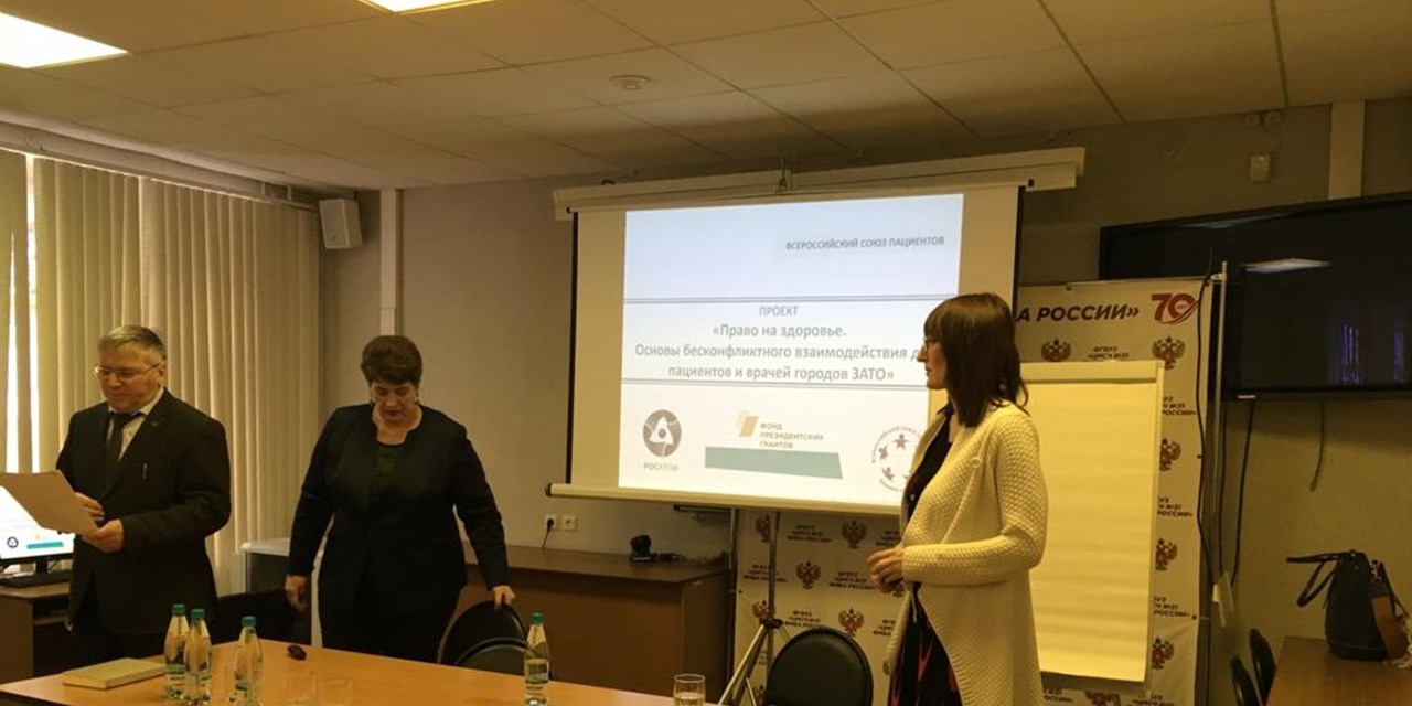 14 ноября 2019 года в конференц-зале ФГБУЗ МСЧ №32 состоялся тренинг для медицинских работников г.Новоуральск Свердловской области, в рамках проекта «Право на здоровье. Основы бесконфликтного взаимодействия для пациентов и врачей городов ЗАТО» Всероссийского союза пациентов, поддержанного Фондом президентских грантов.