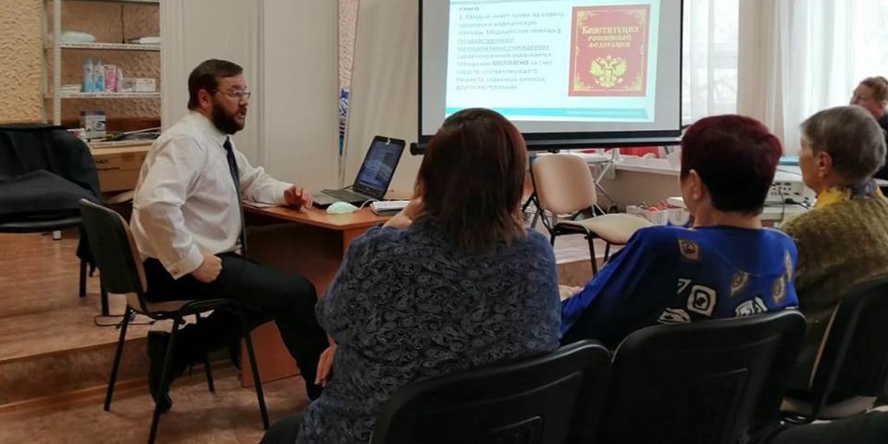 На встрече обсуждались вопросы о получении бесплатной медицинской помощи по полису ОМС, представлена презентация «Программа госгарантий РФ 2020», «Организация бесплатной медицинской помощи в Российской Федерации». Спикер рассказал о возможности получения правовой информации на Горячей линии по защите прав пациентов.