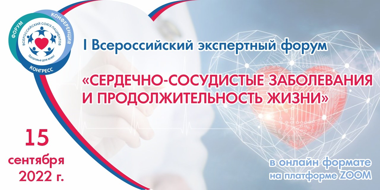 15 сентября 2022 года Всероссийский союз пациентов (ВСП) провел I Всероссийский экспертный форум «Сердечно-сосудистые заболевания и продолжительность жизни».