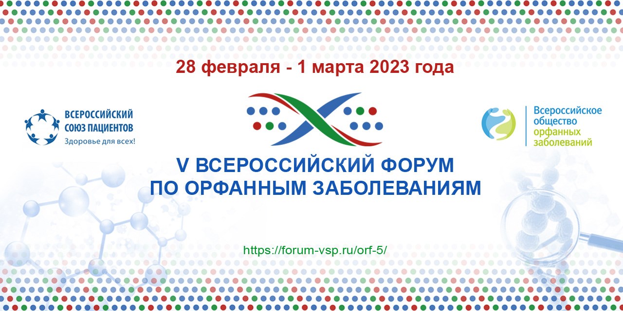 28 февраля - 1 марта 2023 года состоится V Всероссийский форум по орфанным заболеваниям. Организаторы форума – Всероссийский союз пациентов (ВСП) и Всероссийское общество орфанных заболеваний (ВООЗ).