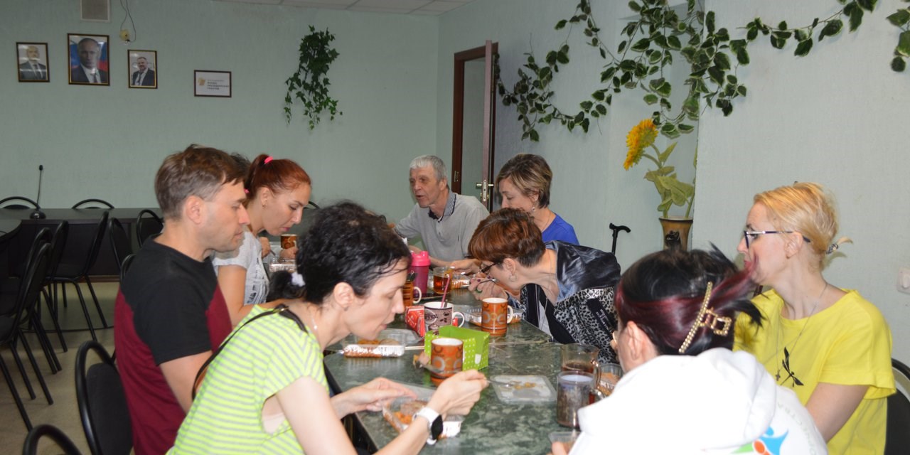 Закрепляли положительный эффект от занятий реабилитанты комплексным обедом, общением и массой положительных эмоций.