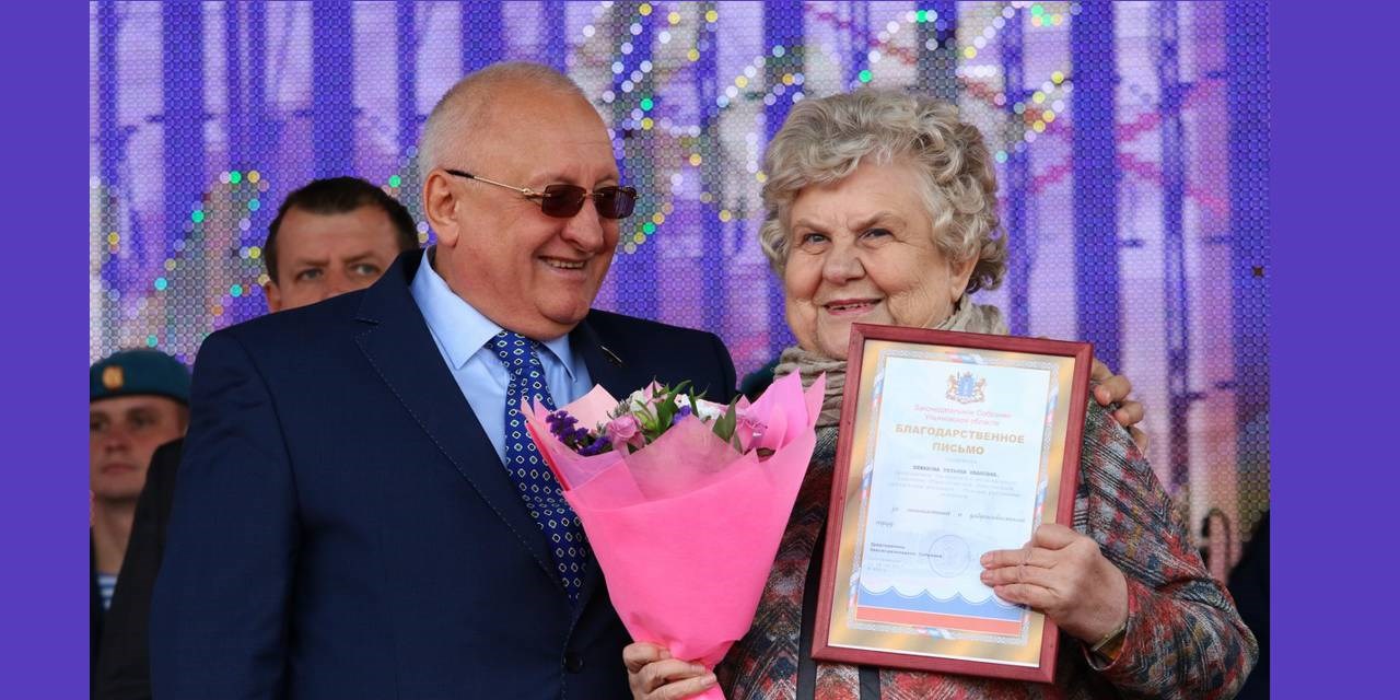 В рамках праздничных мероприятий спикер областного парламента наградил Благодарственными письмами Законодательного Собрания активистов общественного движения, внесших значительный вклад в жизнь города, работников муниципальных образований Ульяновска Почетной награды удостоены десять человек.