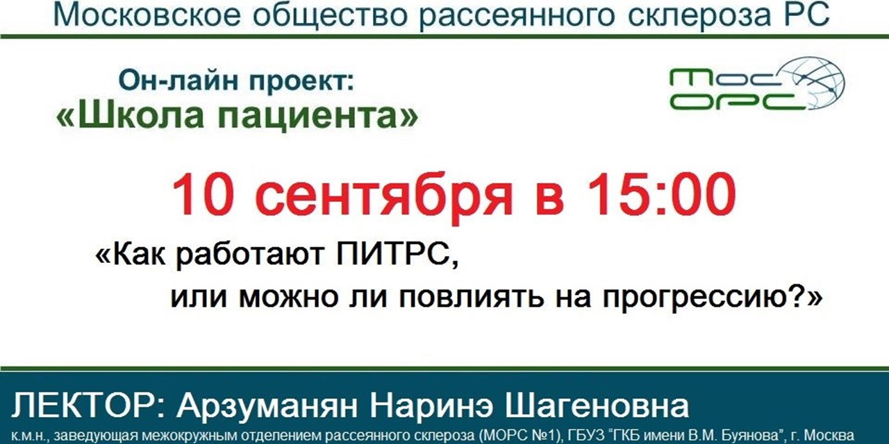 Друзья! Приглашаем вас на двенадцатую трансляцию нашего просветительского on-line проекта «Школа пациента» которая состоится в четверг, 10 сентября 2020 года в 15-00. Это третий вебинар из цикла «Пять фактов о прогрессии, или ВПРС — приговор или диагноз?».