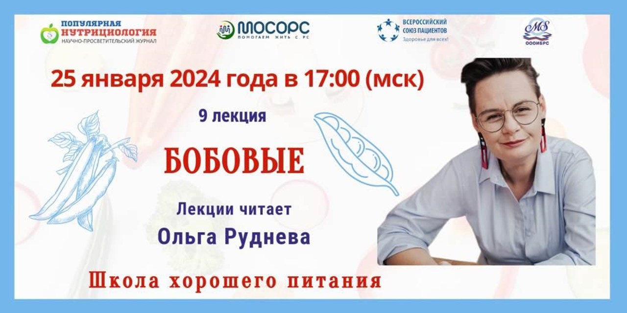 Дорогие друзья! В четверг 25 января 2024 года в 17.00 (МСК) приглашаем вас на 9-й вебинар «Бобовые» цикла лекций «Школа хорошего питания»!