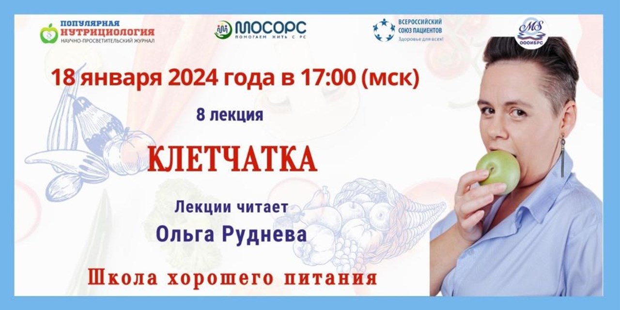 Дорогие друзья! В четверг 18 января 2024 года в 17.00 (МСК) приглашаем вас на 8-мой вебинар «Клетчатка» цикла лекций «Школа хорошего питания»!