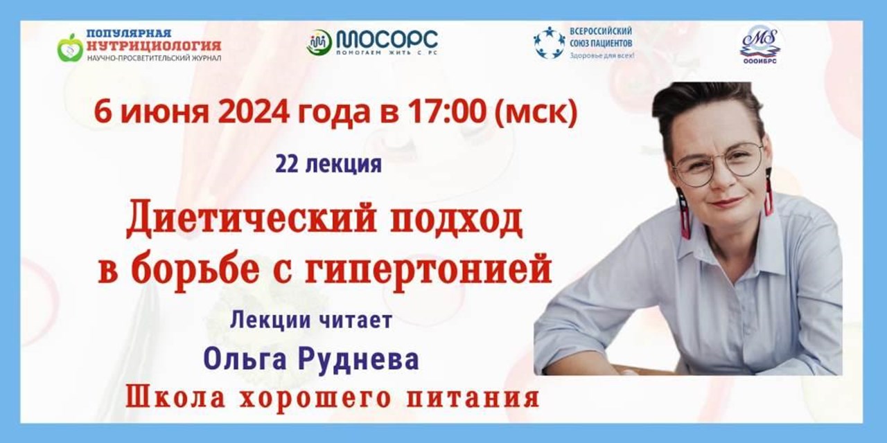 Дорогие друзья! В четверг 6 июня 2024 года в 17.00 (МСК) приглашаем вас на 22-й вебинар «Диетический подход в борьбе с гипертонией» из цикла лекций «Школа хорошего питания»!