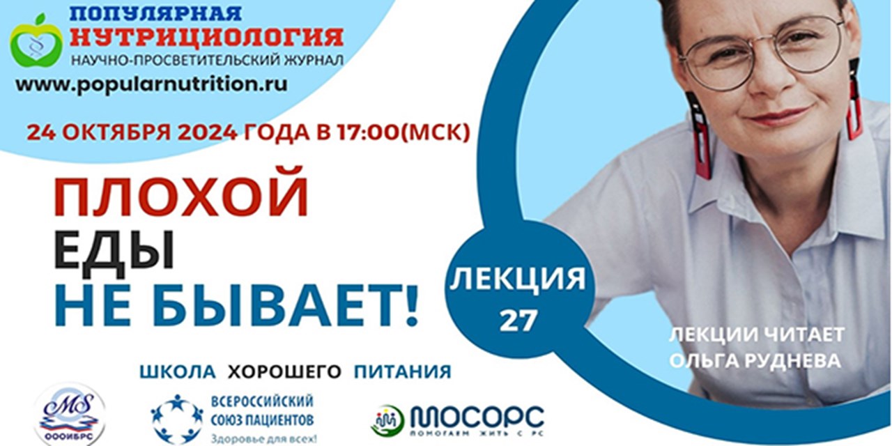 Дорогие друзья! В четверг 24 октября 2024 года в 17.00 (МСК) приглашаем вас на 27-й вебинар «ПЛОХОЙ ЕДЫ НЕ БЫВАЕТ» цикла лекций «Школа хорошего питания»!