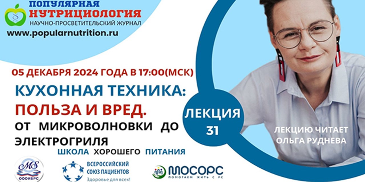 Дорогие друзья! В четверг 5 декабря 2024 года в 17.00 (МСК) приглашаем вас на 31-й вебинар «КУХОННАЯ ТЕХНИКА: ПОЛЬЗА И ВРЕД» цикла лекций «Школа хорошего питания»!
