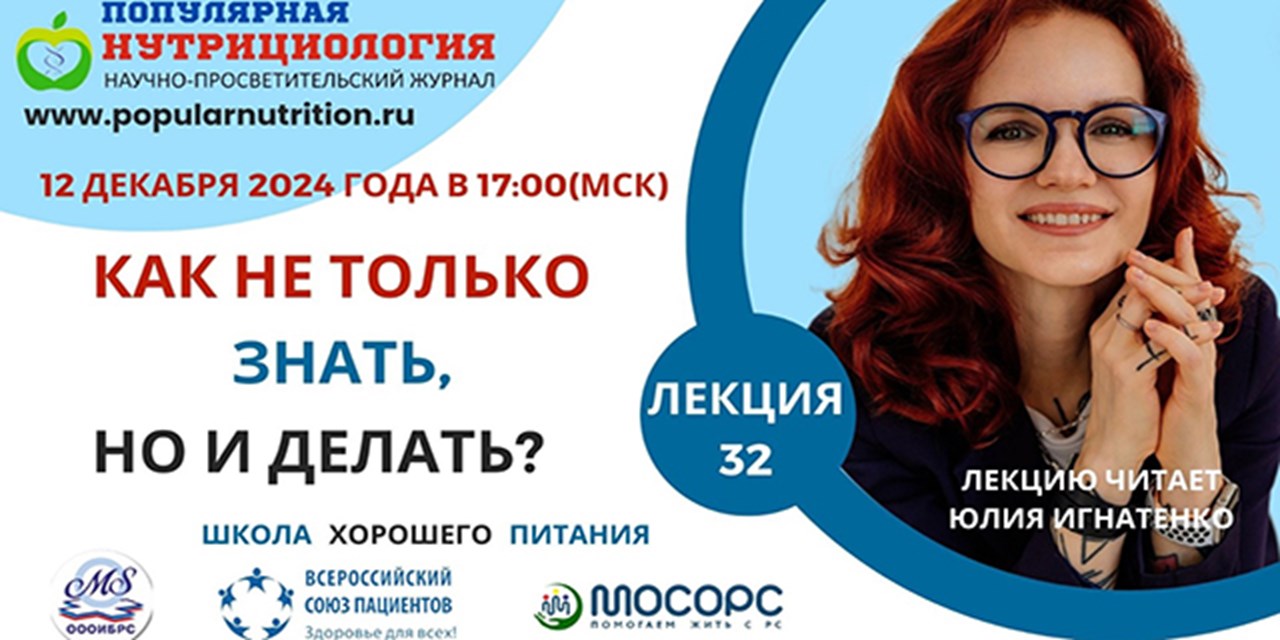 Дорогие друзья! В четверг 12 декабря 2024 года в 17.00 (МСК) приглашаем вас на 32-й вебинар «КАК НЕ ТОЛЬКО ЗНАТЬ, НО И ДЕЛАТЬ» цикла лекций «Школа хорошего питания»!