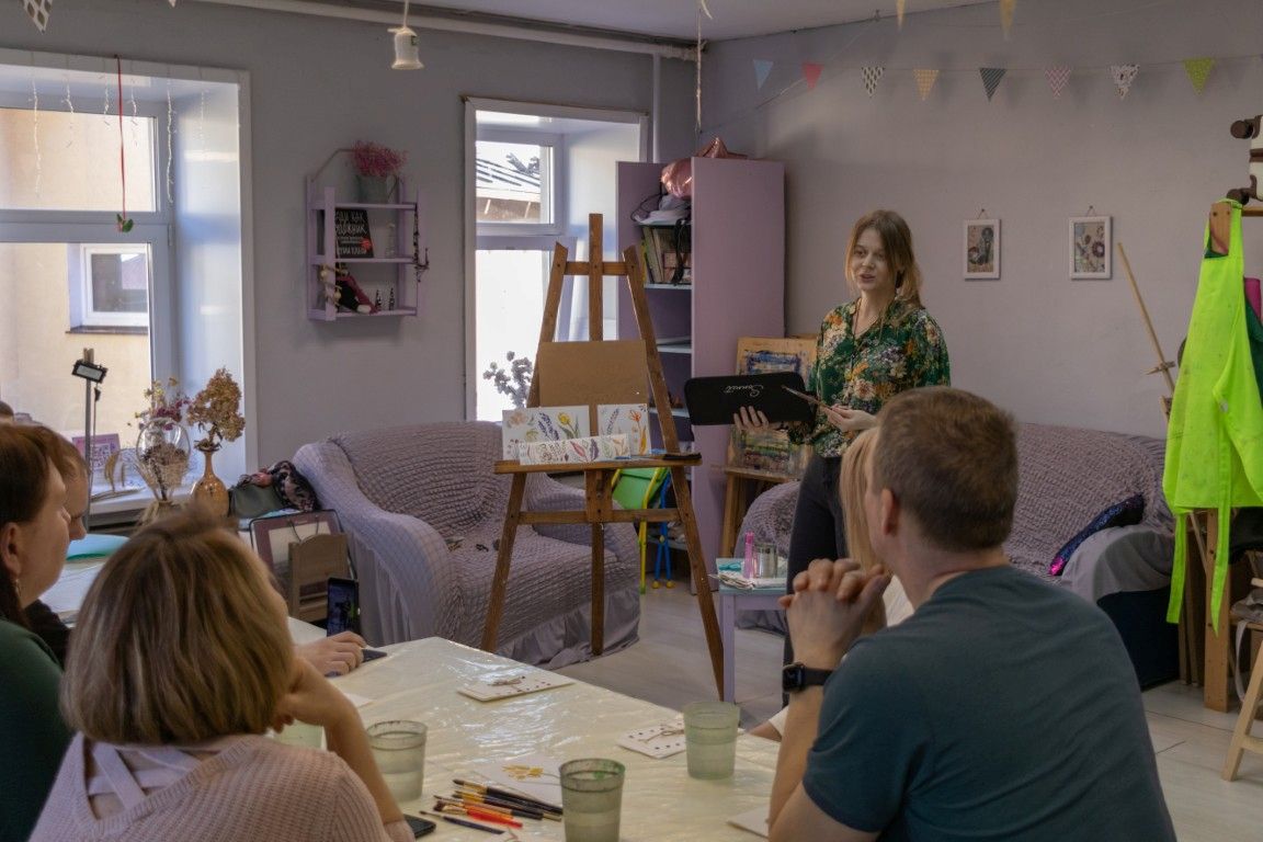 Хотим поделиться своими впечатлениями от посещения мастер-класса по акварельному скетчингу. Занятия проходят в уютной творческой студии. Привлекло то, что за один урок, продолжительностью 2 часа, все ушли с готовыми работами собственного написания (с помощью профессионала конечно). Татьяна продумывает и объясняет всё до мелочей, профессионализм человека покоряет: техники рисования, карандаши, плюсы и минусы различных кистей - ни о чём не надо думать и заморачиваться, учит смешивать краски, чтобы достичь того или иного эффекта и помогает исправить огрехи новичка. Завершилось мероприятие чаепитием.