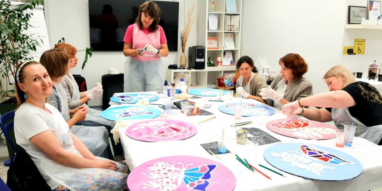 Занятие прошло в партнерском пространстве "Бизнес-Развитие" под руководством арт-терапевта. Участники получили возможность освоить новые техники работы с текстурной пастой, акрилом и эпоксидной смолой, создавая уникальные картины, отражающие их внутренний мир.