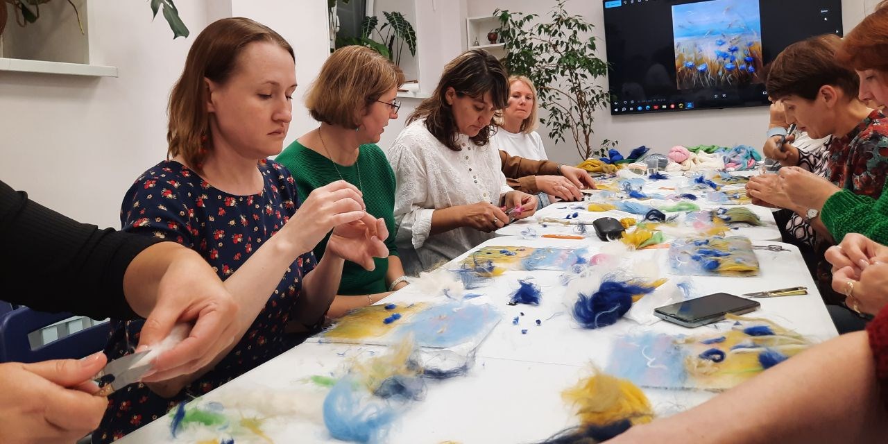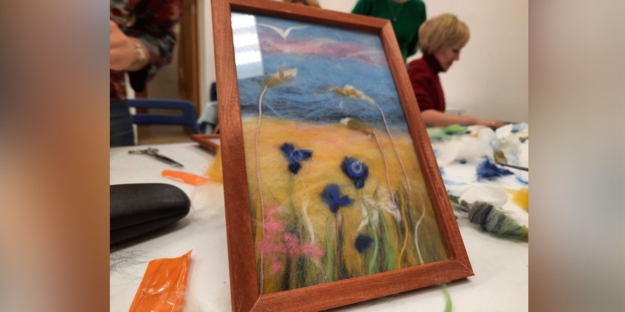 Занятие организовано командой некоммерческой организации «Расстояние», реализующей проект, в партнерском пространстве "Бизнес-Развитие. Образование". Участники освоили технику создания картин из шерсти, работая с различными цветами и текстурами.