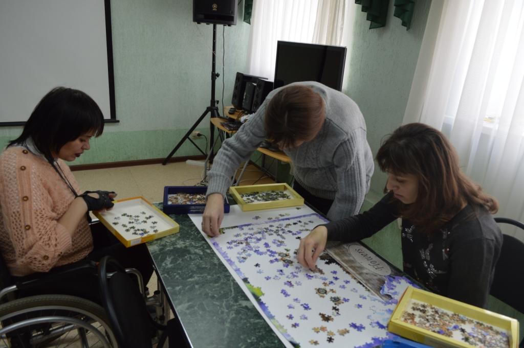 В понедельник у нас теперь проходят занятия рукоделием и психологические тренинги. На рукоделии мы продолжаем собирать пазл, в качестве домашней работы мастерицы выкладывают алмазную мозаику, вышивают крестом, рисуют шерстью. Психология все больше носит игровой характер, все чаще проходят сеансы кинотерапии. В четверг мы продолжаем заниматься адаптивной гимнастикой, а в субботу после физкультуры идем играть в настольные игры! В спортзале уже не хватает места – желающих заниматься все больше и больше! Играть мы продолжаем в Иманджинариум (все больше и больше узнаем, друг о друге много интересного) – УНО пока отошло на второй план.