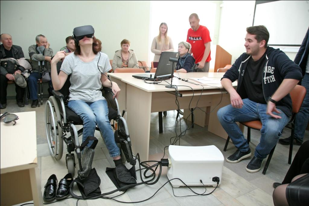 Было проведено знакомство с аппаратом ReviVR. Желающие прошли курс обучения работы на тренажёре и совершили первое занятие по реабилитации с помощью VR технологий.