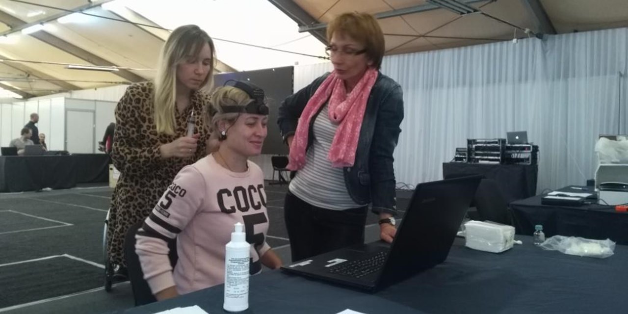 В сентябре к обычным курсам реабилитации добавились тренировки к международным соревнованиям ассистивных технологий. Мы продолжали надевать очки виртуальной реальности, добавляя электроды на икры, и пытались уже ходить почти самостоятельно. Надевали шлемы с электродами, которые считывали импульсы с коры головного мозга, двигали предметы на экране монитора силой мысли (меняя состояния). Еще один шлем с электродами позволял силой мысли набрать текст. И для всего для этого понадобилась сила воли, время и упорство.