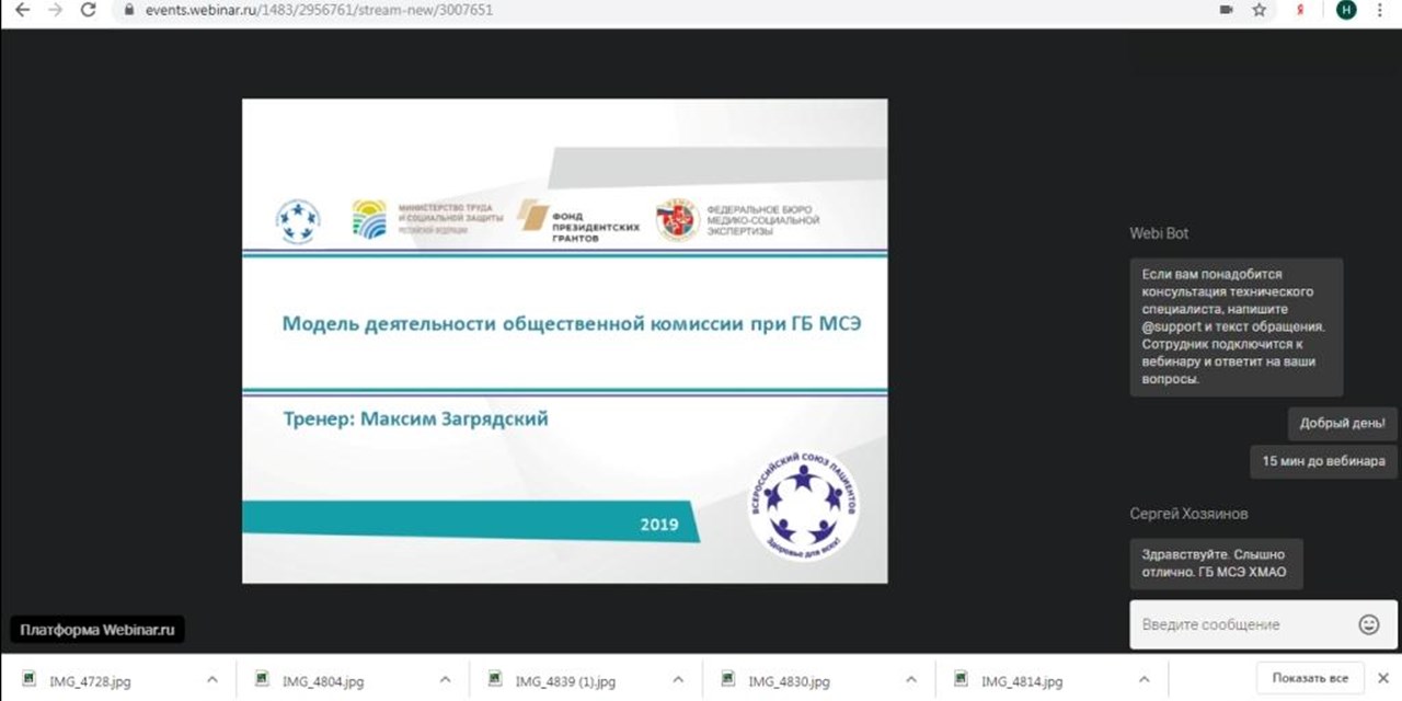 В штатном режиме была представлена презентация о лучших практиках работы ОК по стране. Были получены комментарии о работе ведомства и непосредственно общественной комиссии. Удалось проработать в режиме интерактива несколько вопросов по подготовке заседаний. Особенно отметили значимость работы со СМИ в популяризации просвещения жителей региона о работе органов МСЭ и правилах работы ведомства.