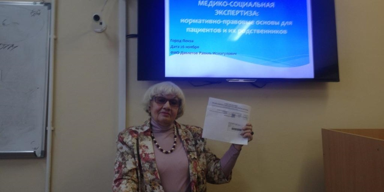 26 ноября 2019 в малом конференц-зале ГБУЗ «Клиническая больница №6 им. Г.А. Захарьина» по адресу Пенза ул. Стасова-7 для пациентов и родственников больных и для лиц, производящих уход, отделения неврологии был проведён информационный семинар по теме «МСЭ: нормативно-правовые основы для пациентов и их родственников» по предложению Всероссийского союза пациентов.