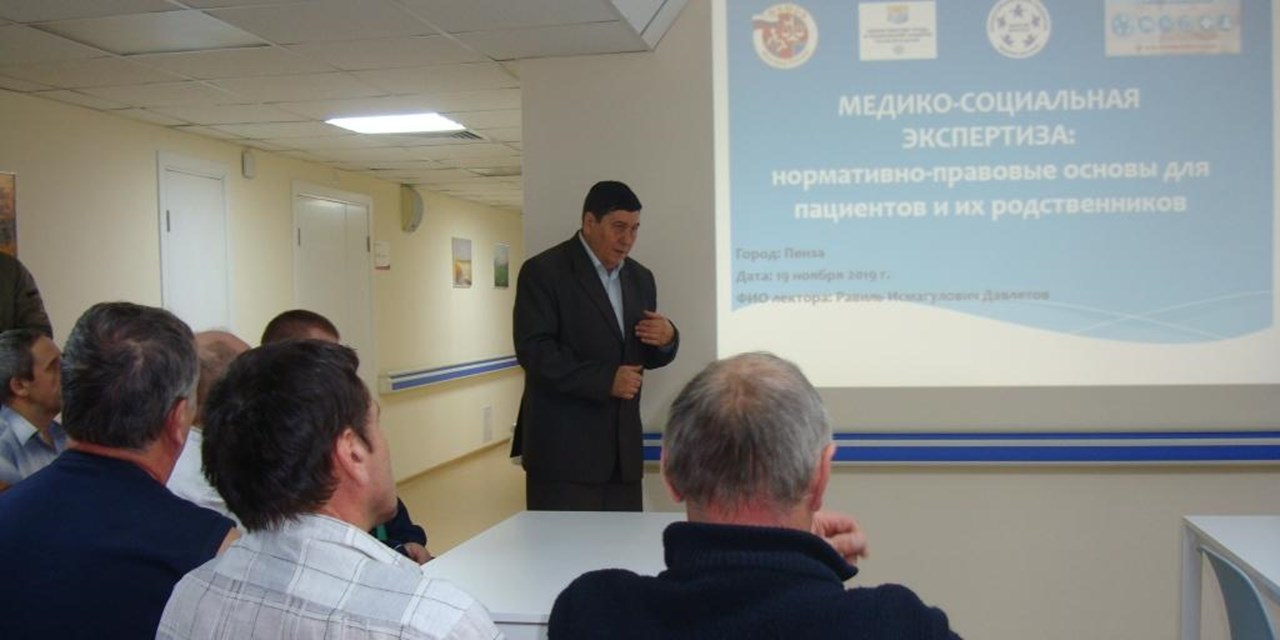 19 ноября 2019 года в отделении неврологии ЧУЗ «Клиническая больница «РЖД-Медицина» г. Пенза» в г. Пенза, по адресу ул. Урицкого 118 был проведён информационный семинар по теме «МСЭ: нормативно-правовые основы для пациентов и их родственников» для больных, членов их семей и лицам, производящим уход за ними по предложению Всероссийского союза пациентов.