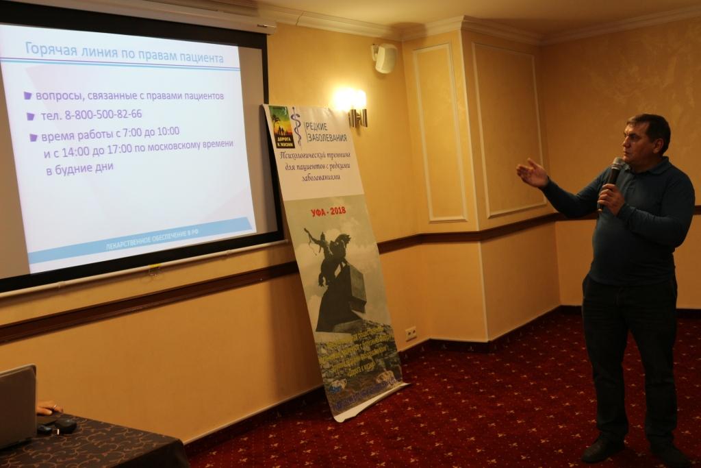 15 октября 2018 г. в конференц-зале  Амакс- турист отеля Уфа, в рамках реализации проекта «Горячая линия для юридической помощи гражданам в защите прав на охрану здоровья», реализуемого при поддержке Фонда президентских грантов в г. Уфа прошла школа пациентов. Темой школы стала «Лекарственное обеспечение в РФ, права и обязанности застрахованных лиц в системе ОМС».