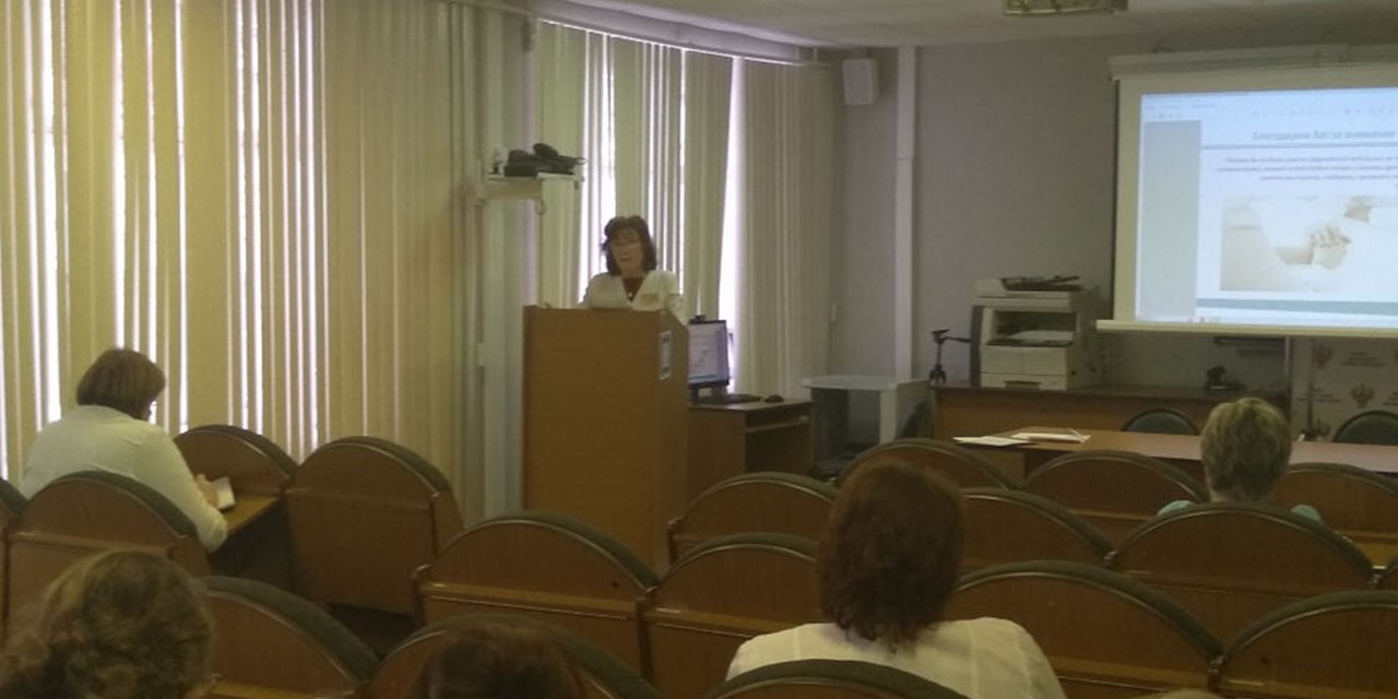 Ведущая лекции заместитель главного врача стационара Зямбахтина Маргарита Александровна в первой части сообщения рассказала о цели проекта «Право на здоровье», географии проекта, о практической пользе эффективной коммуникации врача и пациента. Дала характеристику модели отношений врача и пациента, подробно остановилась на пациенто-центрированной модели здравоохранения, акцентировала внимание на основах выстраивания отношений с пациентом, особое внимание уделила эффективным стилям коммуникации. Привела классификацию психотипов и моделей поведения пациентов-агрессоров.