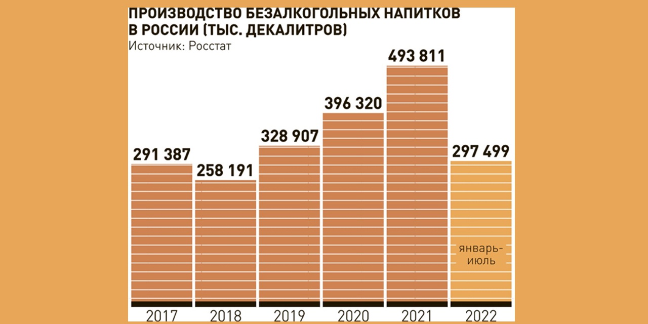 Как показывает статистика, в последние годы потребление сладкой газировки в стране растет. Правда, в мае-июне этого года наблюдалось падение рынка на 5,2%. Это было вызвано уходом с нашего рынка Pepsi и Coca Cola, рассказала партнер компании "НЭО Центр" Альбина Корягина. Однако отечественные производители бросились осваивать освобождающуюся нишу, и рынок быстро восстановился. За 2022 год мы увидим двузначные темпы роста производства сладкой газировки - 10-15%, прогнозирует эксперт. За первое полугодие этого года рынок сладких газированных напитков увеличился на 2,6 млрд рублей в сравнении с тем же периодом прошлого года. Весь рынок на этот год оценивается в 8,78 млрд долларов. По прогнозам "НЭО Центр", выручка отрасли после спада в этом году будет ежегодно увеличиваться на 2,8 млрд долларов.